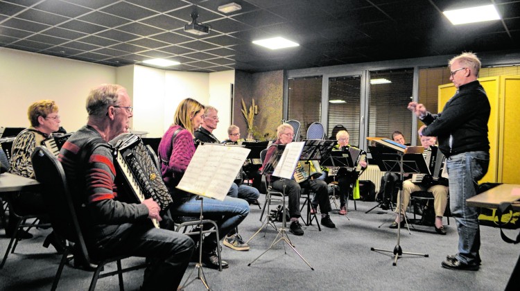 “Word nu nog snel lid, dan kun je meespelen tijdens het jubileum in 2026!” grapt een lid tijdens de repetitie.