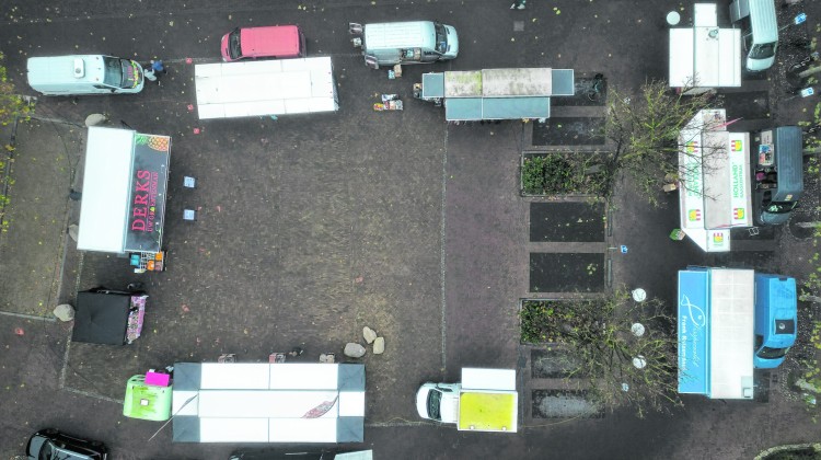 Een van de weinige non-foodkramen die we in de gemeente Lochem tegenkwamen, is die van de heer Bourgogne. Hij was ooit schade-expert bij een bank en is nu al 25 jaar marktondernemer. “Het is tegenwoordig vooral hobby,” vertelt hij. “Internet is de boosdoener,” zegt hij nuchter. Hij is momenteel langzaam aan het afbouwen. “Ik ben dan ook al 82 jaar,” lacht hij. De markt moet nog even op gang komen als we aanwezig zijn. “Het begint meestal rond 11 uur, maar op de markt kun je niks plannen.”