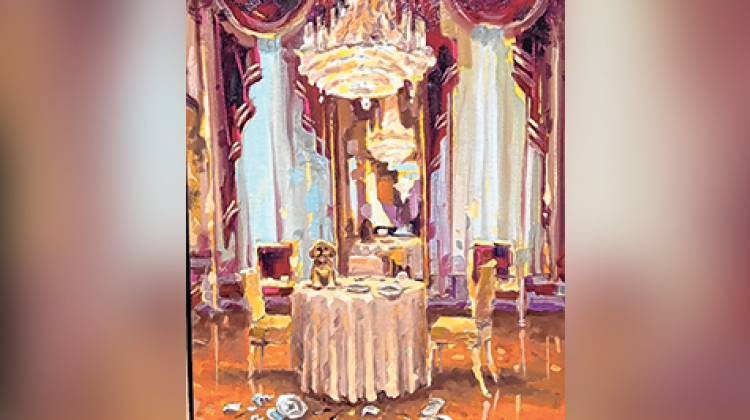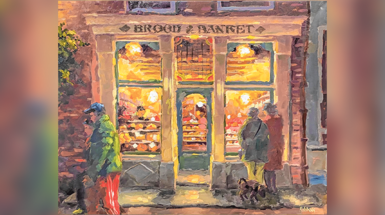 Soms met een kwinkslag, want Volbeda is een vrolijk mens die ook humor in zijn schilderijen verwerkt. Zo hangt er een schilderij met op het eerste oog een leuk hondje op een tafel. Als je verder kijkt, ontdek je dat dat lieve hondje een ravage heeft aangericht met het servies dat op die tafel stond.